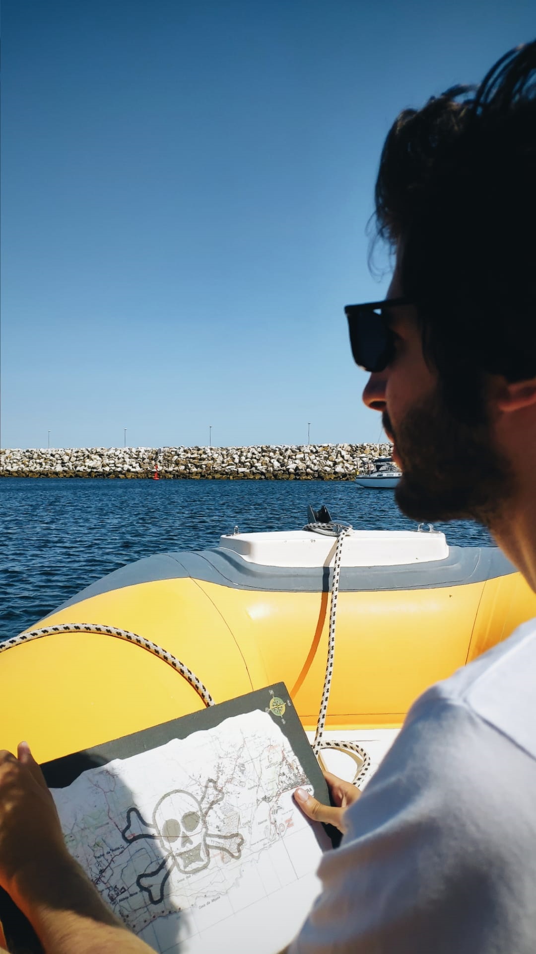 Navegámos numa embarcação seguindo um mapa e pistas deixadas por piratas e pescadores.